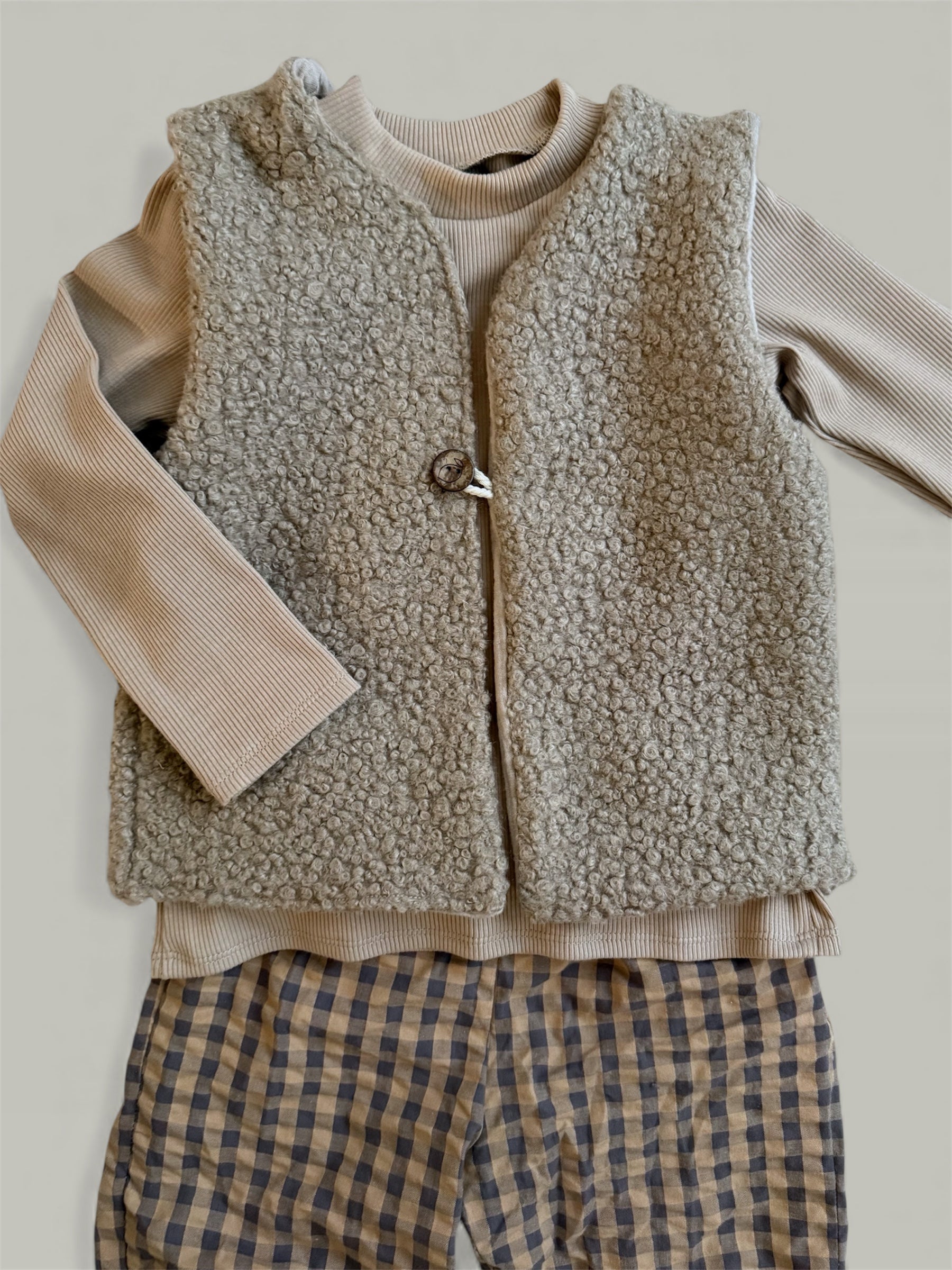 Ein liebevolles Knopfdetail rundet das Design ab und macht die Weste zu einem echten Lieblingsstück. 🤍