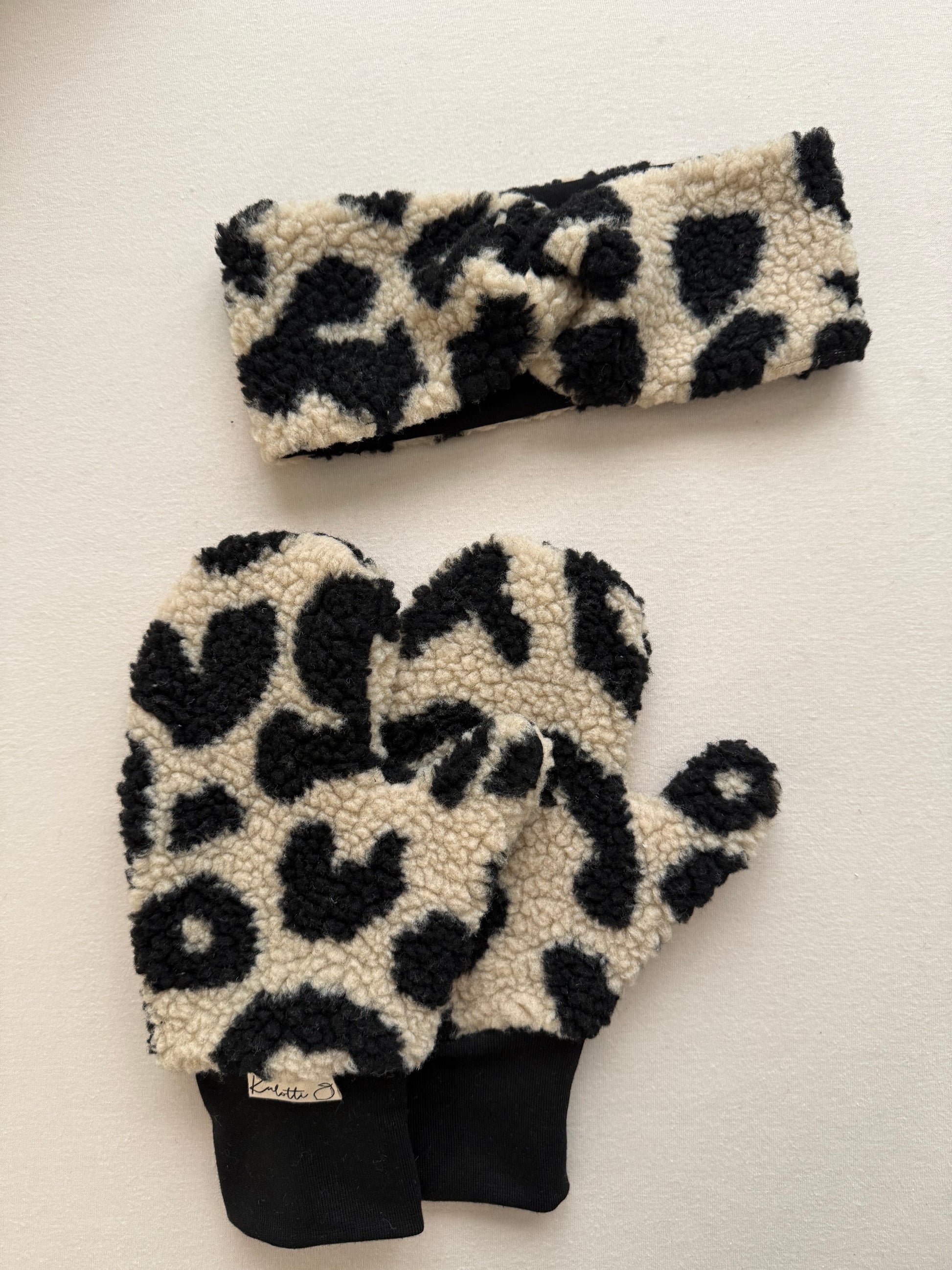Auch im Partnerlook mit Mama möglich – für den ultimativen Family-Style! Kombiniere die Fäustlinge mit dem passenden Stirnband oder Loop für ein rundum stylisches und kuscheliges Set im Leoprint-Look.